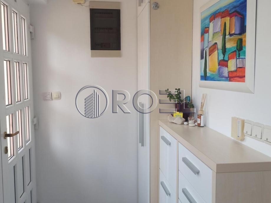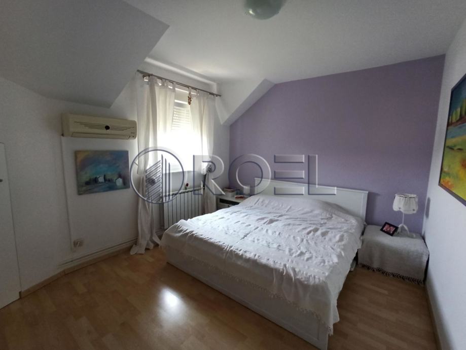Na prvi kat dolazi se elegantnim ovalnim stubištem obloženim staklenom ciglom koje osigurava obilje prirodnog svjetla. Na katu su smještene četiri spavaće sobe, hodnik i velika kupaonica, a glavna spavaća soba ima vlastitu prostranu garderobu. Dvije sobe s izlazom na balkon trenutno su pregrađene ugradbenim ormarom, no u jednoj od njih postoje priključci za kuhinju, što omogućuje jednostavno formiranje zasebnog stana na gornjoj etaži uklanjanjem ormara i prenamjenom prostora u kuhinju i dnevni boravak.