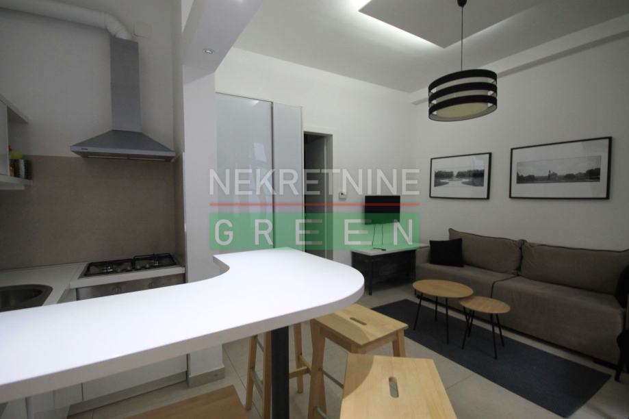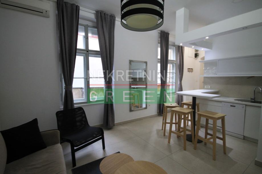 Izuzetan, potpuno namješten dvosoban stan površine 39 m2 na 1. katu/3 stambene zgrade izgrađene 1907. godine, kompletno adaptiran 2019. godine..