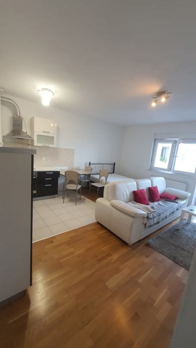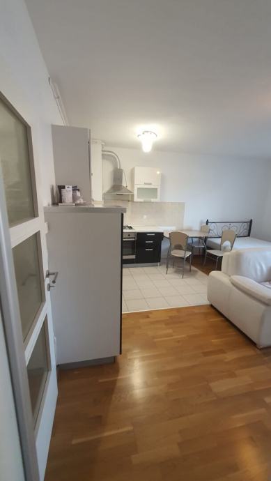 Stan se sastoji od hodnika, kuhinje s blagovaonom i dnevnim boravkom/sobe s izlazom na balkon te kupaonice.
