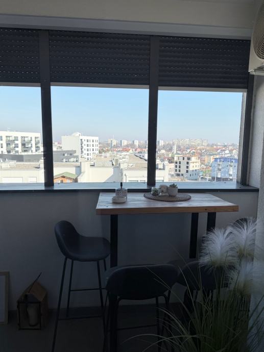 Trosoban stan od 55 m² na osmom katu novogradnje iz 2018. godine u Laništu, neposrednoj blizini Arena Centra, vrtića i škola. Zgrada ima lift, a stan se nalazi na najvišem katu, što osigurava pogled koji nije zaklonjen okolnim zgradama.