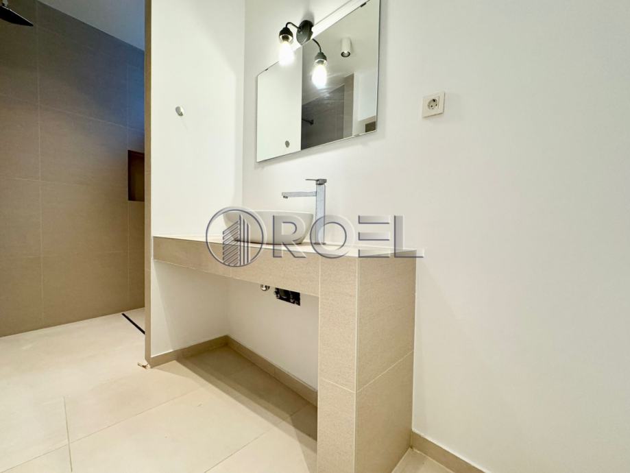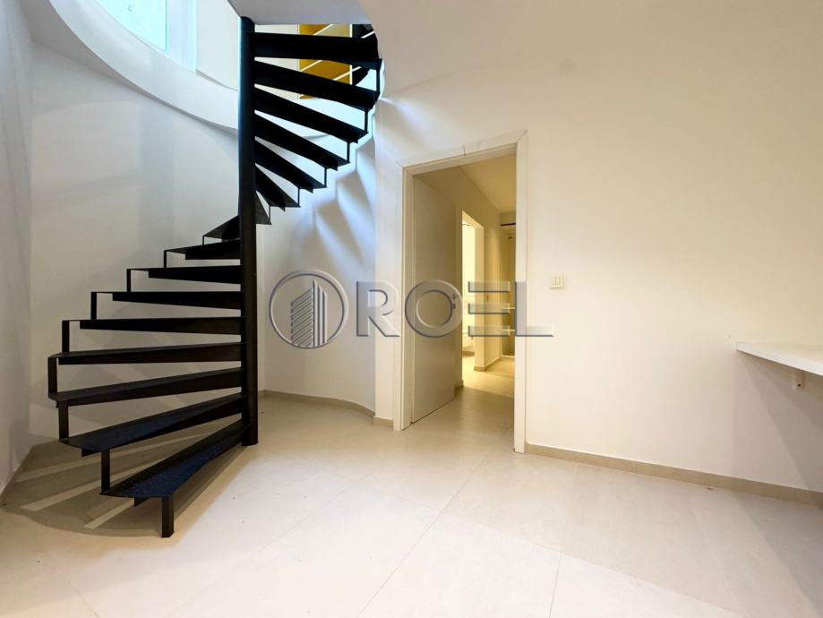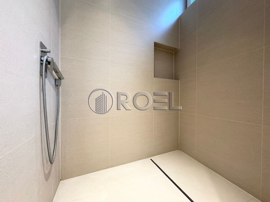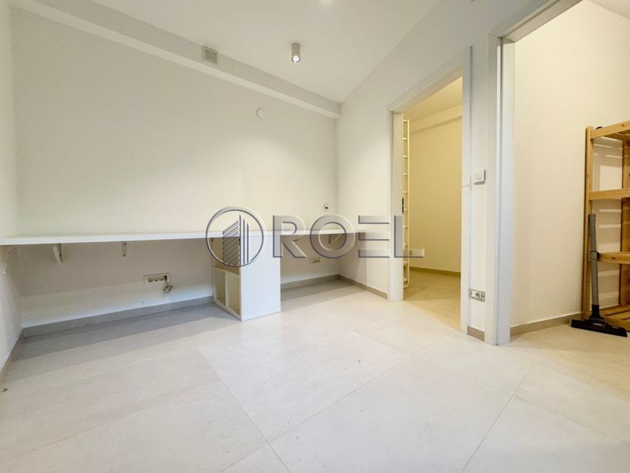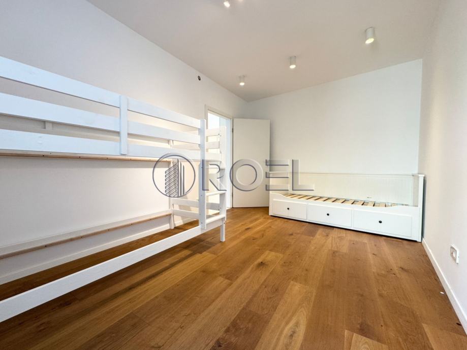 Gornja etaža sastoji se od ulaznog hodnika, prostranog dnevnog boravka otvorenog tipa povezanog s kuhinjom i blagovaonicom, iz koje se izlazi u vrt – idealan za opuštanje ili manja druženja. Na istoj etaži nalaze se dvije spavaće sobe i moderna kupaonica. Donja etaža uključuje dodatni pretprostor s dva radna stola, spremište, vešeraj te treću spavaću sobu s vlastitom kupaonicom, što ovu nekretninu čini funkcionalnom i prilagodljivom različitim potrebama stanovanja.