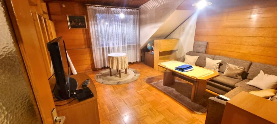 Sastoji se od ulaznog hodnika, dnevnog boravka, kuhinje i blagovaonice, ostave, 3 spavaće sobe, balkona, 2 kupaonice, stanu još pripada spremište i terasa u potkrovlju zgrade i parkirno mjesto u dvorištu.