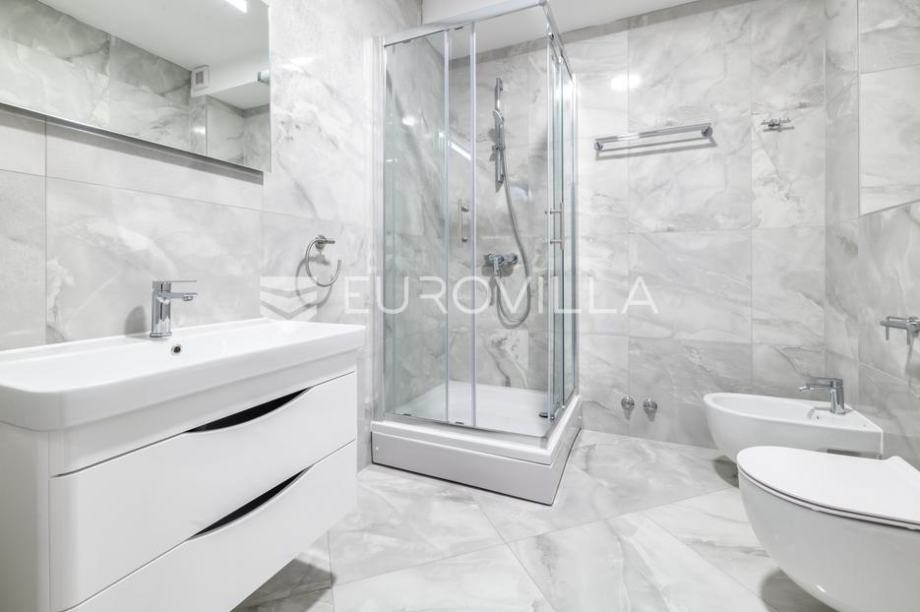 Zagreb, Maksimir, four-bedroom apartment 125 m2 + GARAGE on the ground floor of a newly built building with three residential units in the immediate vicinity of Maksimir Park.It consists of an entrance hall, spacious living room and kitchen area, three bedrooms, bathroom, guest toilet, small pantry...