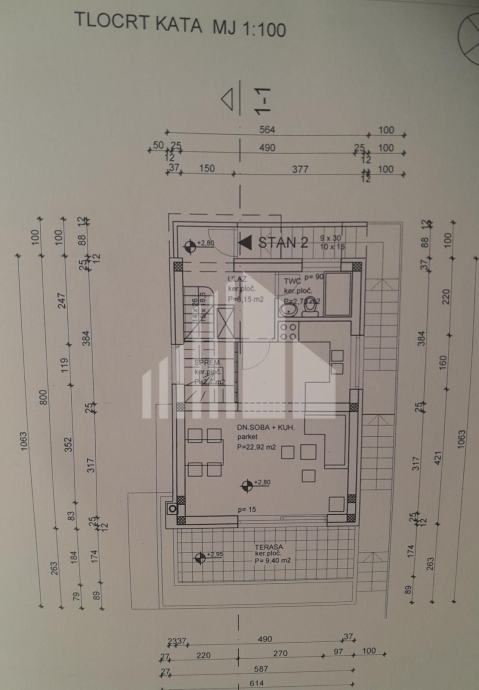 Stan 2 smješten je na 1. katu i potkrovlju stambene zgrade.