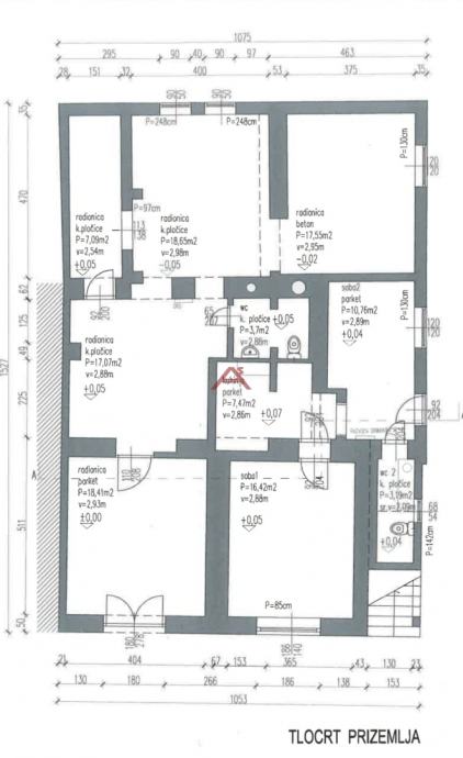 Prizemlje - trenutno se koristi kao radiona 120 m2 i zasebna jedinica 40 m2 sa vlastitim ulazom.