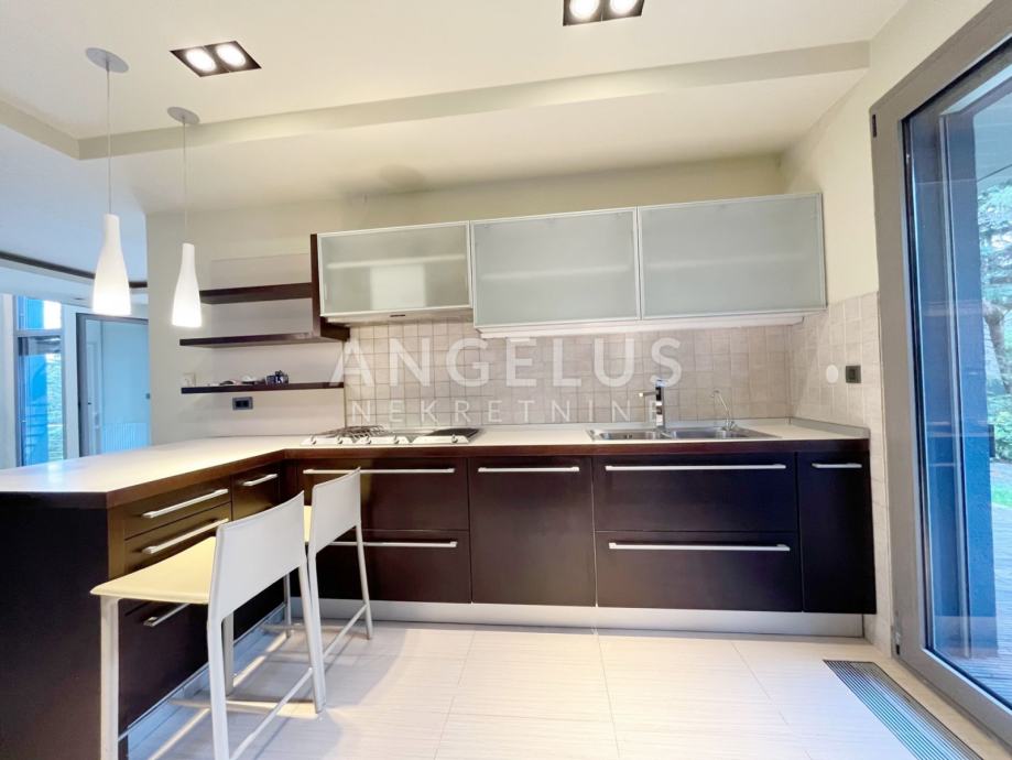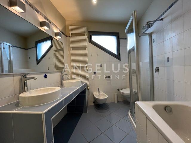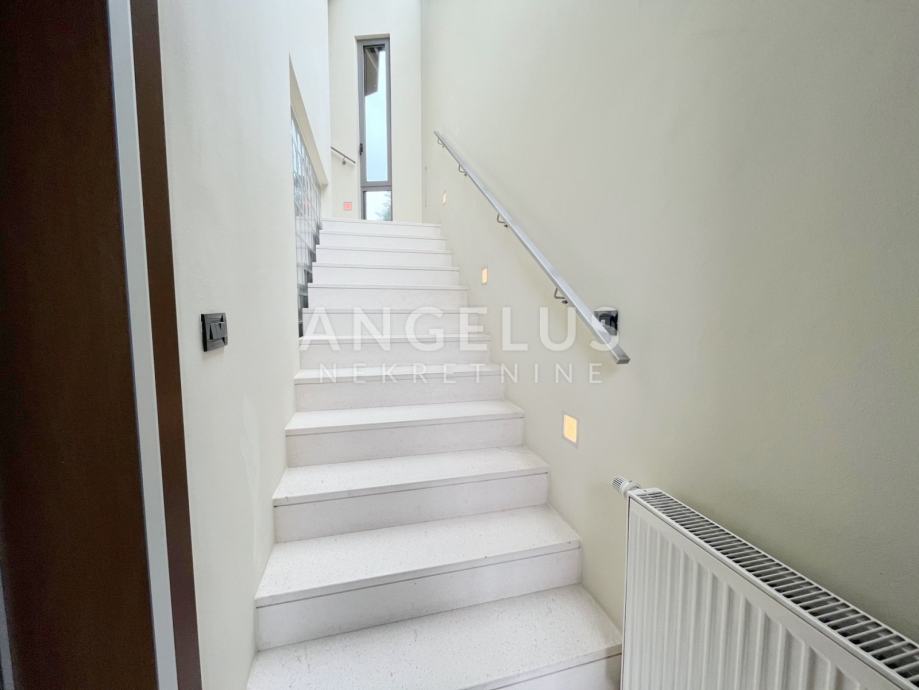 Kuća je izgrađena 2006. godine, a prostire se na 3 etaže. U prizemlju se nalazi: dupla garaža, konoba, teretana, sauna, tuš, kotlovnica i toalet. U visokom prizemlju je kuhinja sa izlazom na vrt, veliki dnevni boravak sa kaminom i izlazom na terasu i dvije manje sobe. Na katu su tri spavaće sobe, , balkon, kupaonica i glavna spavaća sa svojom kupaonicom. Kuća je nenamještena, plinsko centralno grijanje, klimatizirano. Kuća je u fazi renovacije. Obnovljena je fasada, terase, a uskoro će biti renovirane i kupaonice.