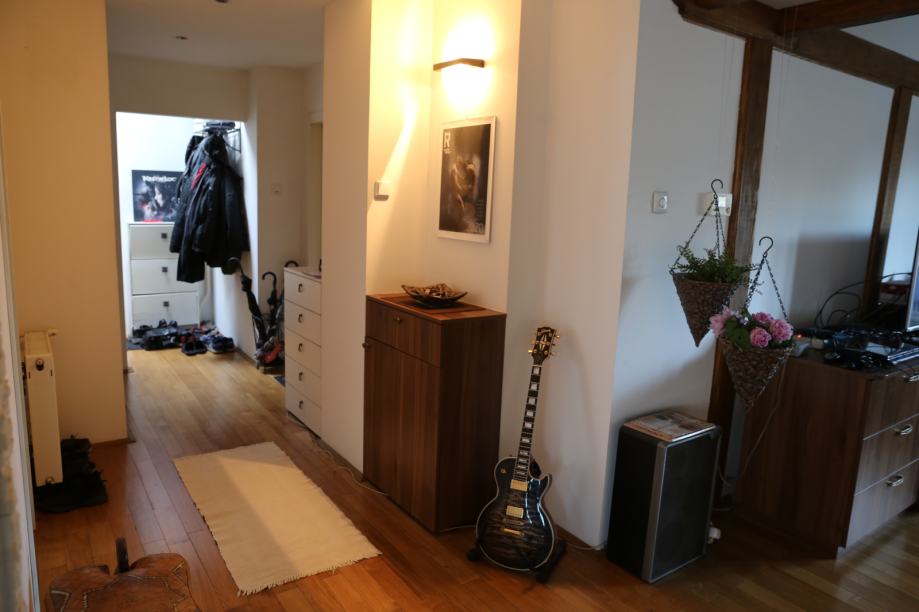 -Stan koji se sastoji od ulaznog hodnika, kupaonice, dječje sobe, dnevnog boravka, blagovaonice, spremišta i kuhinje