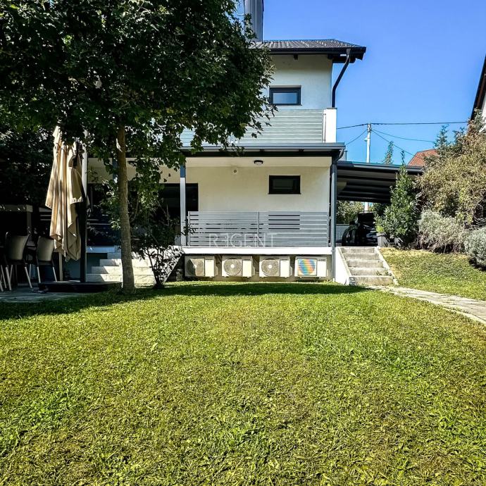Smještena u mirnom dijelu Remeta, u mirnoj ulici te nedaleko od poznatog parka Maksimir, ova obiteljska dvojna kuća prostire se na tri etaže s ukupnom površinom od 198 m² na zemljištu površine 380 m².