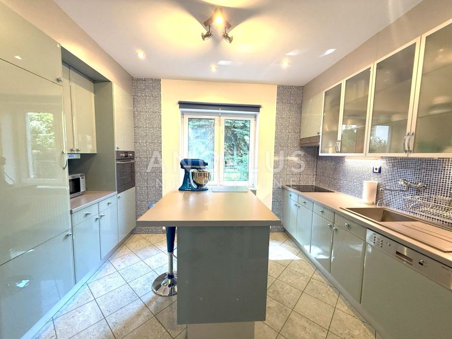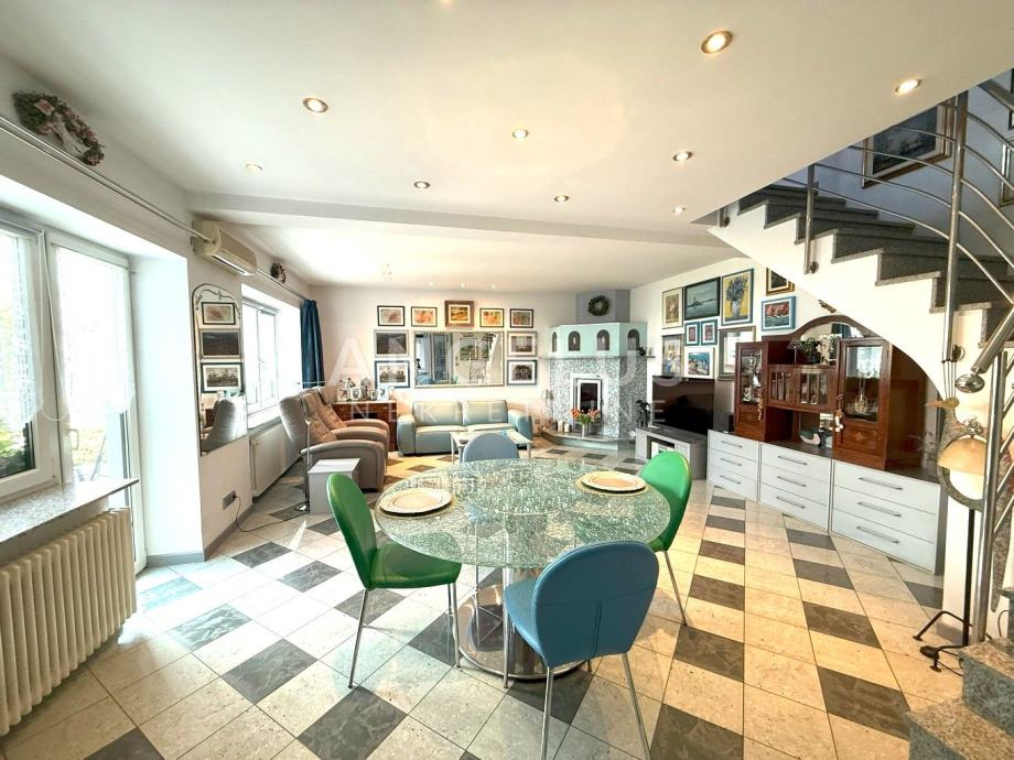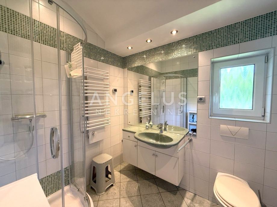 OPOIS: Ova obiteljska kuća proteže se na dvije etaže i idealna je za veliku obitelj. U prizemlju se nalazi veliki dnevni boravak s izalzom na terasu i vrt, staklenim vratima odvojena kuhinja s ostavom i vešerajem, toalet, obiteljska soba s kupaonom i garderobom. Poseban ulaz ima soba s kupaonom idealna za goste. Na prvom katu je veliki prostor idealan za dječiji dnevni boravak, tri spavaće sobe, od kojih dvije imaju garderobu, kupaonica i toalet. Uz kuću se nalazi garaža.