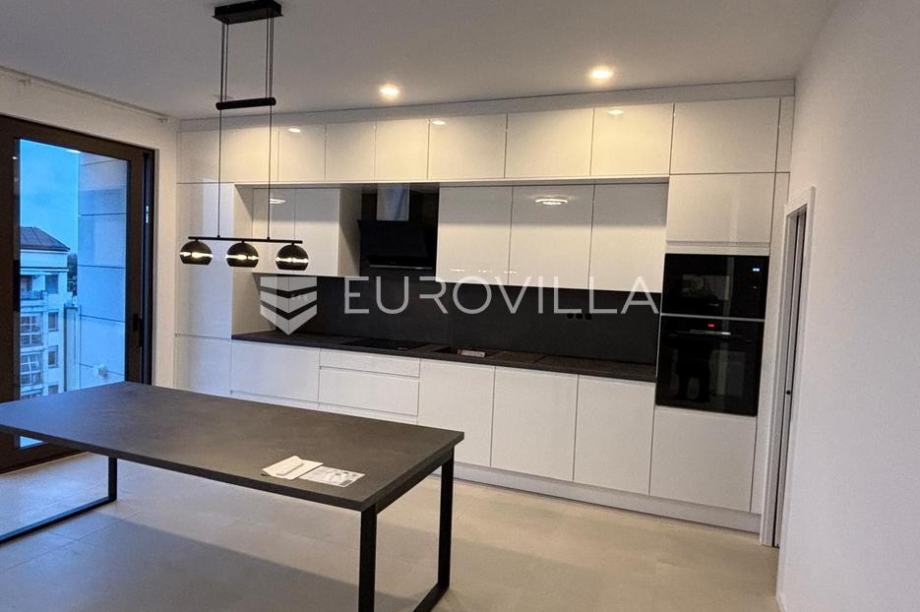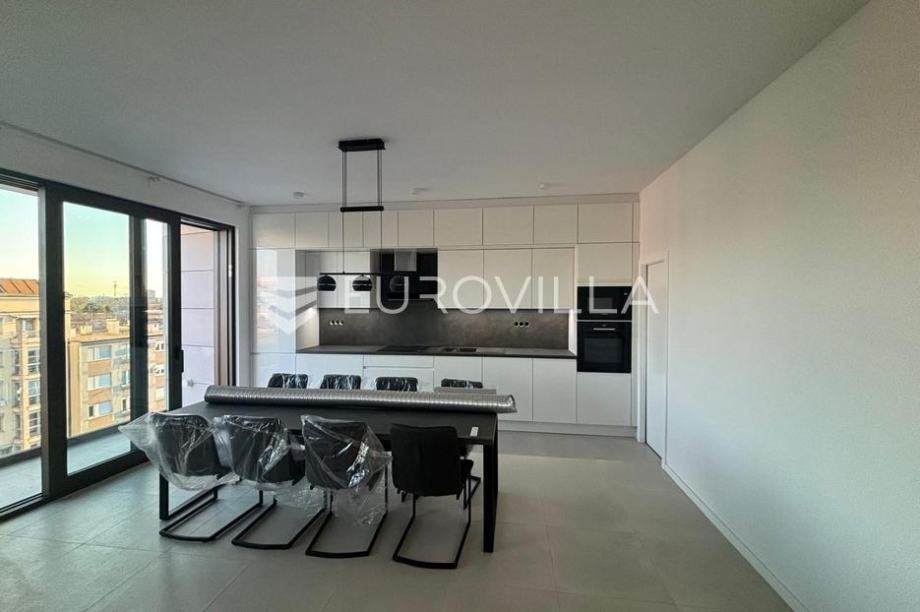 Zagreb, Maksimir, beautiful four-bedroom apartment on the fifth floor with an area of 114,18 m2.The apartment consists of an entrance hall with built-in wardrobes, two bathrooms, a utility room, three bedrooms, an open-space living room with a kitchen and a dining room with access to a beautiful...