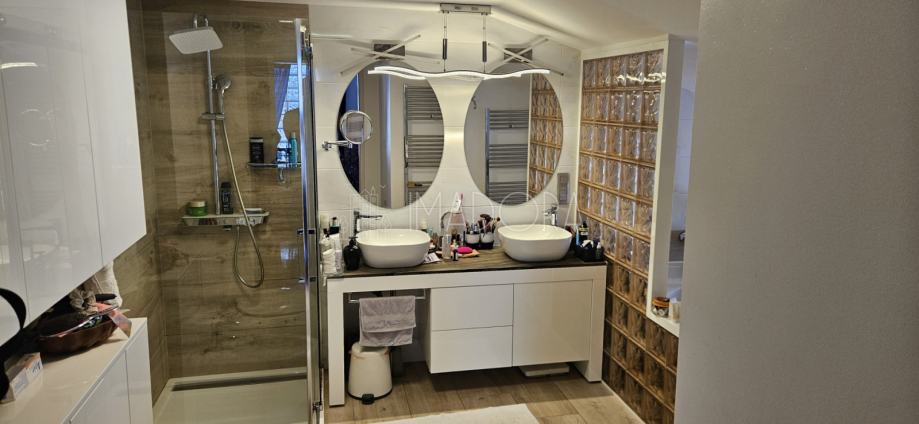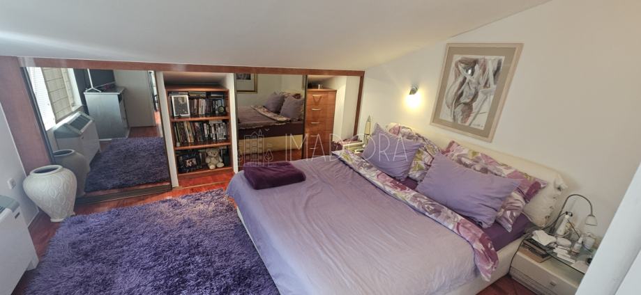 Stan se prostire na dvije etaže ukupne površine 160 m², a ističe se prostranošću, pametnim rasporedom prostorija i predivnim panoramskim pogledom s gornje terase.