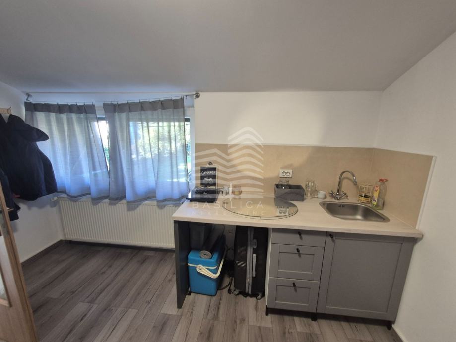 Prvi kat se sastoji od dnevnog boravka sa kuhinjom i blagovaonom, male radne sobe i kupaonice.