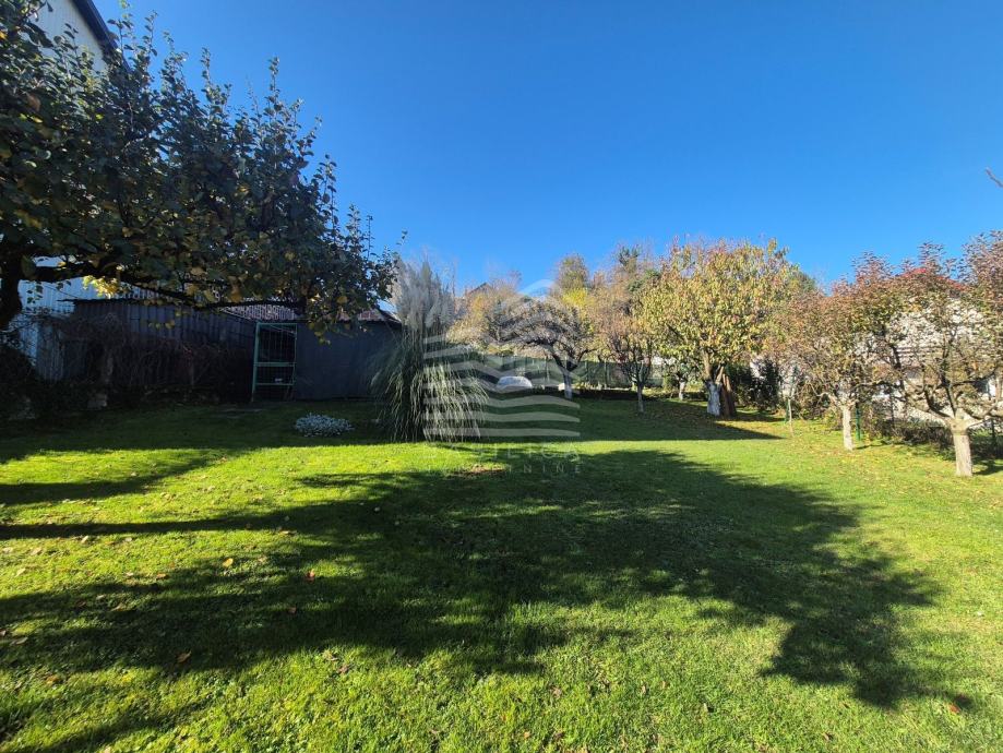 Kuća ima veliku okućnicu (625 m2); više parkirnih mjesta, sjenicu sa pekom, spremište sa radionicom, veliki travnjak i voćnjak.