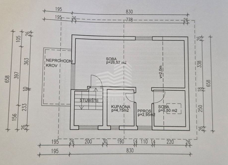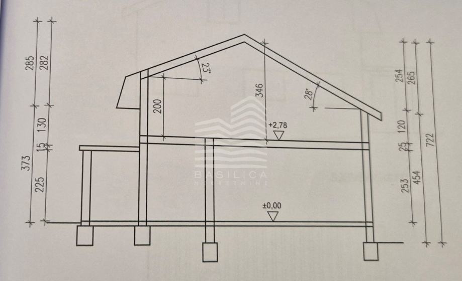 Prizemlje se sastoji od hodnika, izbe, kuhinje, kupaone, dnevnog boravka sa blagovaonom i spavaće sobe.