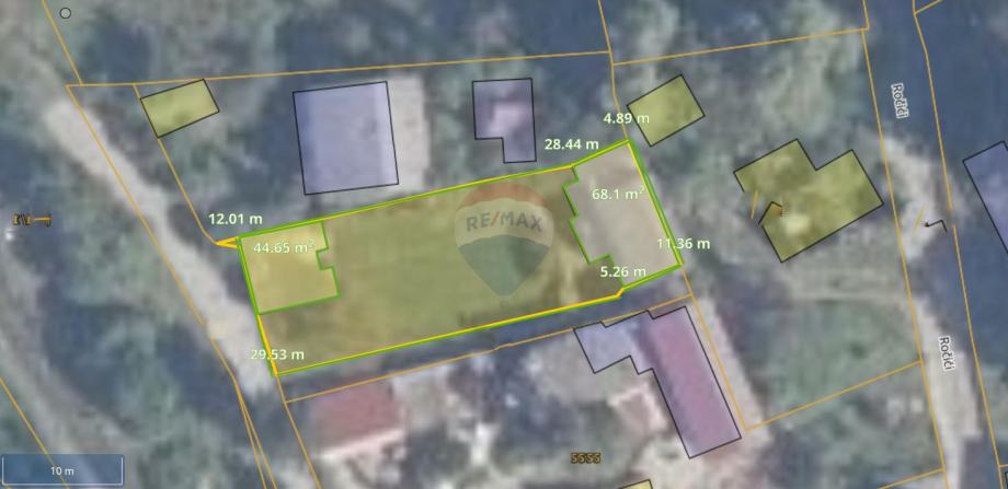 Površina parcele 568 m2, pravilnog oblika, blagog pada prema zapadu.