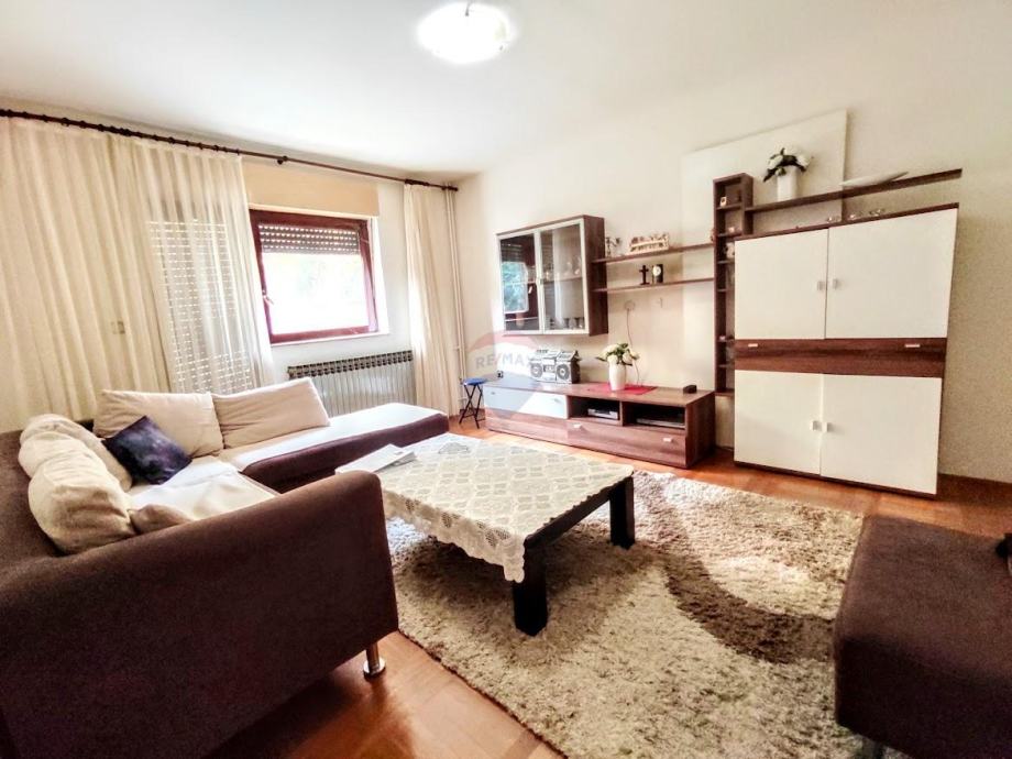 Prizemlje se sastoji od: hodnika, kuhinje sa blagovaonom, dnevnog boravka, dvije spavaće sobe, kupaonice te izlaz na balkon s prekrasnim pogledom.