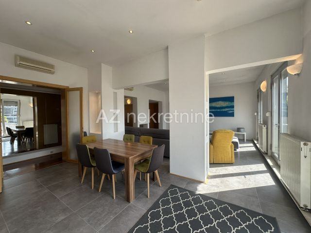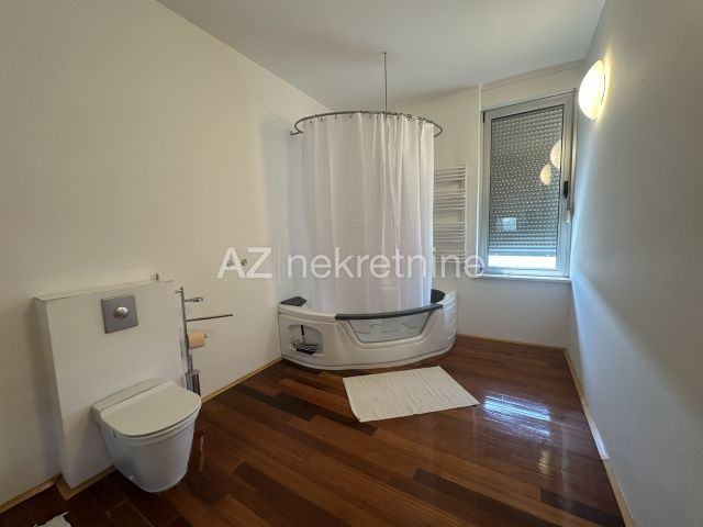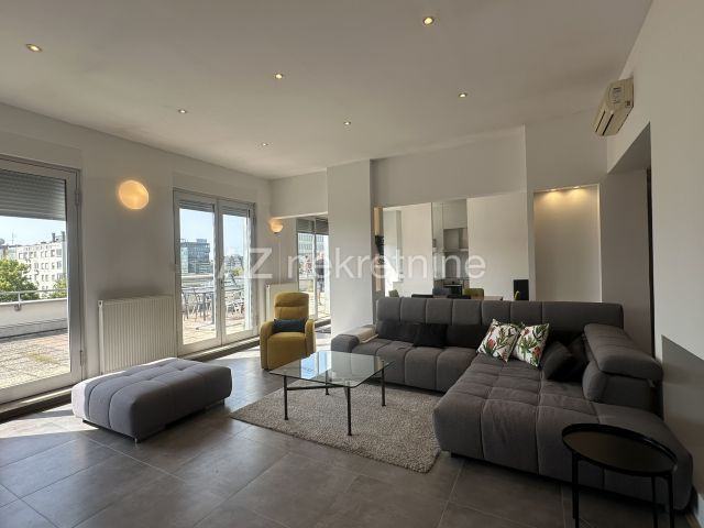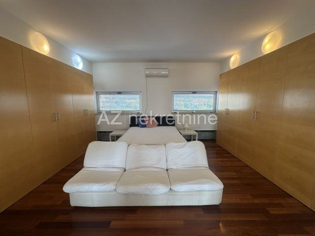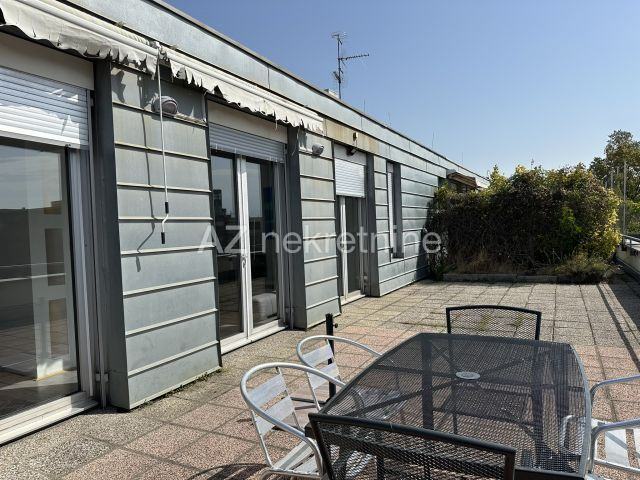 Stan se nalazi na zadnjem katu zgrade s liftom, a osim 135 m2 stambenog prostora s pogledom na Medvednicu, pripada mu i velika, privatna terasa južno/sjeverne orijentacije.