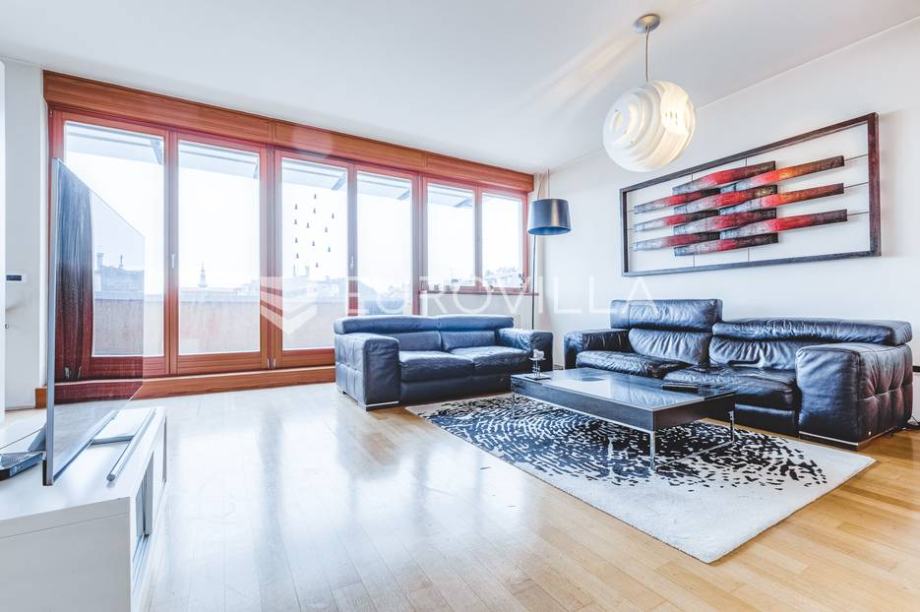 Zagreb, Medveščak, beautiful two bedroom penthouse NKP 116 m2 in a great location, just a ten minute walk to Ban Josip Jelačić square. It is located in a smaller residential building, built in 2012. It consists of an entrance hall, a guest toilet with a laundry room, an open spacious living...
