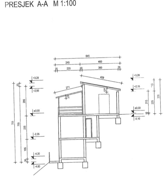Izgrađena je kao slobodnostojeća troetažna građevina koja se sastoji od podruma, suterena i prizemlja.