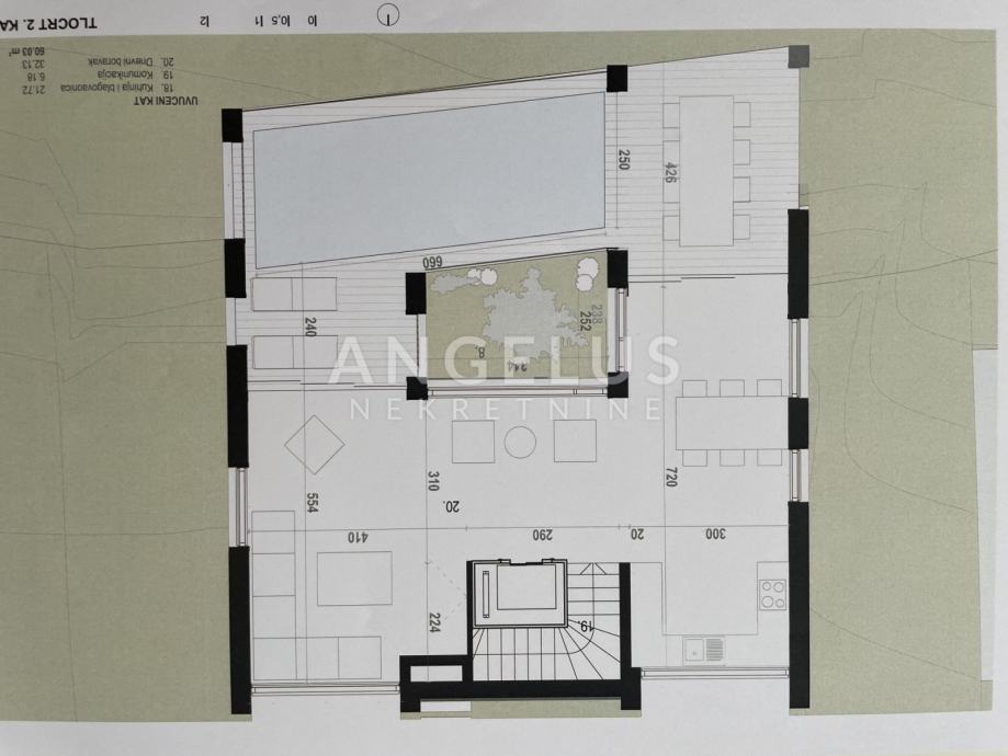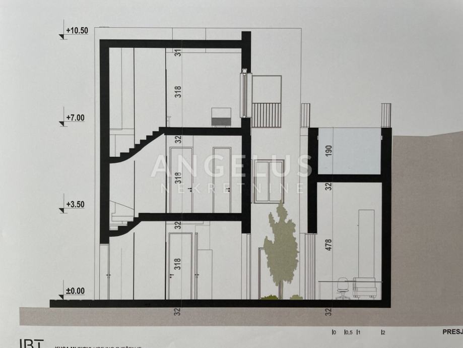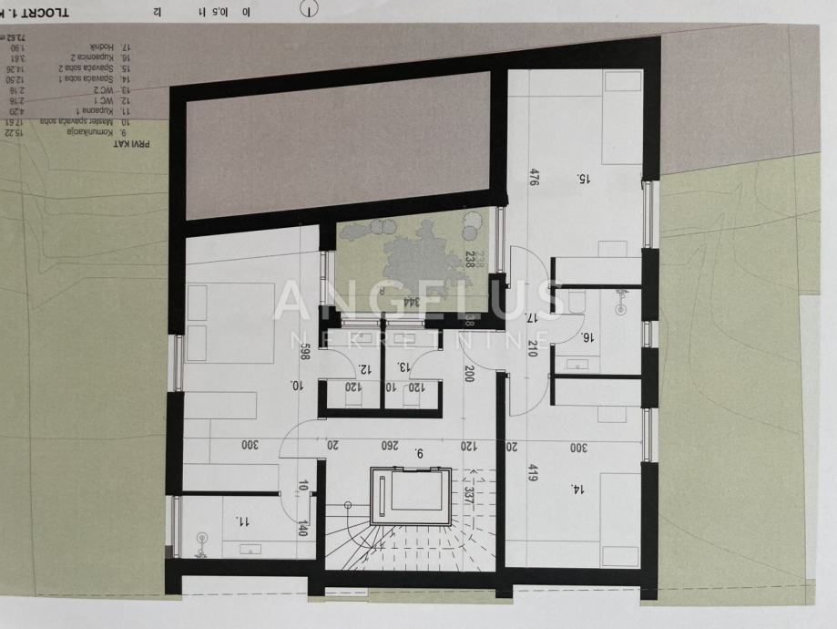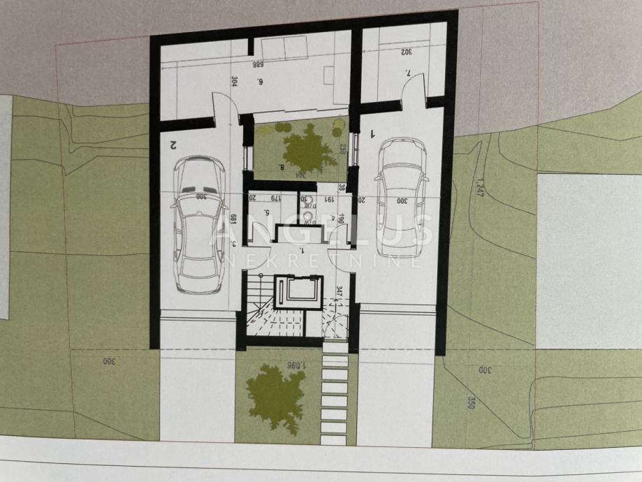 OPIS: Parcela je pravokutnog obilka, na kojoj je postojeći objekt od 70m2. Izrađen je idejni projekt i dobiveni posebni uvjeti za obiteljsku kuću s bazenom (300m2). Garaže i ostave su na prizemlju, spavaće sobe na 1 katu i dnevni boravak s kuhinjom na zadnjoj etaži radi pogleda i izlaska na vrt sa stražnje strane.
