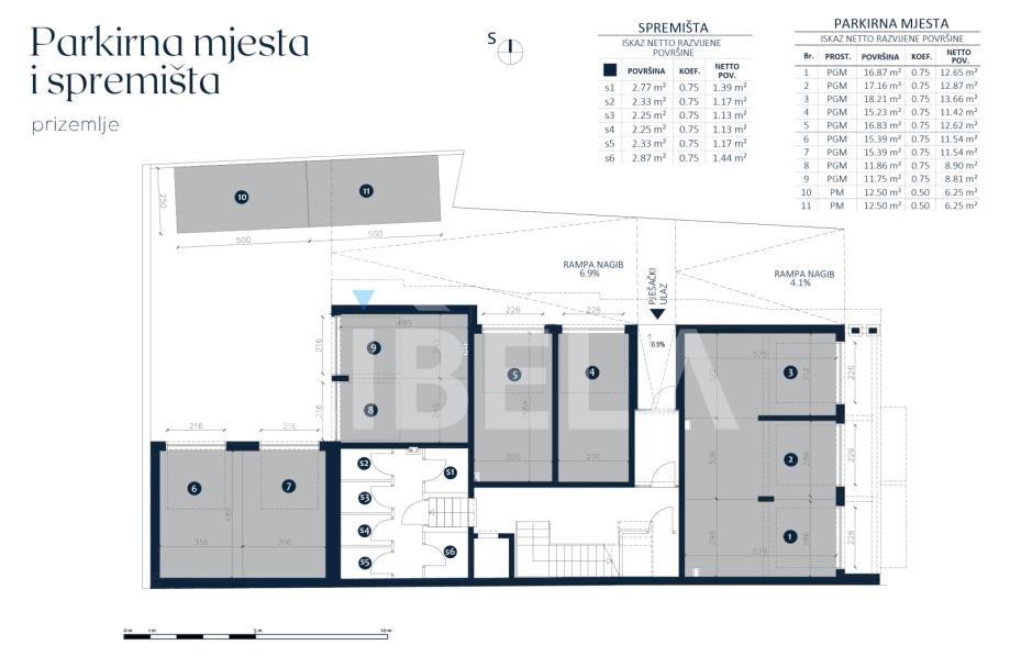 Mogućnost kupnje garažnog parkirnog mjesta za 35.000 EUR ili vanjskog za 20.000 EUR. Kupovina spremišta u prizemlju zgrade također moguća, između 5.000 i 7.000 EUR, ovisno o točnoj kvadraturi.
