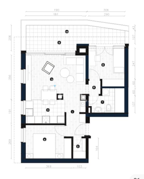 Ovaj projekt smješten je u srcu Črnomerca, jedne od poželjnijih i dinamičnijih zagrebačkih četvrti, nudeći svojim stanovnicima savršenu ravnotežu između mirnog obiteljskog života okruženog prirodom i blizine svih ključnih gradskih sadržaja.Ova ulica odiše šarmom Zagreba, uz dostupnost suvremenih pogodnosti.Raspored stana:Prostrani dnevni boravak s blagovaonom (17,50 m²) – nudi udobnost i praktičnost za svakodnevni život, s direktnim izlazom na natkrivenu terasu Kuhinja (7,20 m²) – pametno dizajnirana u sklopu dnevnog boravka i blagovaone, pruža dovoljno radne površine i prostora za pohranu.Hodnik (3 m²) – praktičan s dovoljno prostora za odlaganje.Kupaonica (5 m²) – moderna i elegantna, opremljena Villeroy & Boch sanitarijama.2 spavaće sobe (9,40 i 8,90 m²) – dovoljno prostrane s mogućnošću izlaza na lođu.