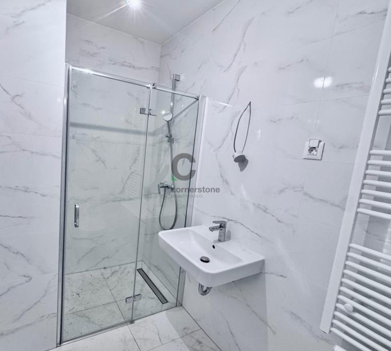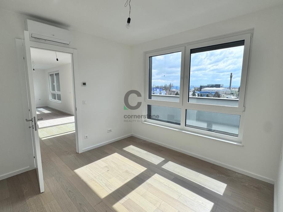 Prekrasan, svjetao i prostran dvosoban stan s velikim balkonom nalazi se na petom katu zgrade. Stan se sastoji od ulaznog hodnika, kupaonice, spvaće sobe i velikog prostora koji objedinjuje kuhinju, blagovaonicu i dnevni boravak. Duž cijelog stana se prostire širok balkon ispunjen svjetlom tijekog cijelog dana zbog južne orijentacije stana.