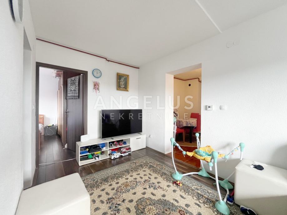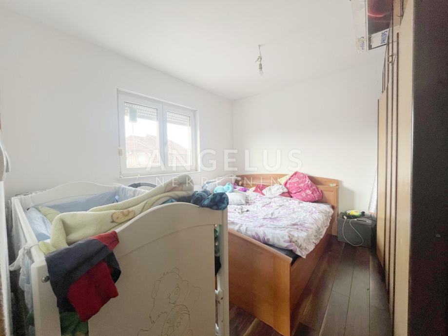 Zgrada je završena prije 4 godina, prostire se na 5 etaža. Stan, stambene površine 51,98 m2, nalazi se na drugom katu, a sastoji se od: dvije spavaće soba, hodnika, kuhinje sa blagovaonicom i dnevnim boravkom, 2 kupaonice i natkrivenog balkona. Stanu pripada i parkirno mjesto površine 12,50 m2 (6,875 €). .Stanu pripada i suvlasništvo u bazenu koji se nalazi u dvorištu ispred zgrade. STANOVI SU ETAŽIRANI, UPORABNA DOZVOLA, STAN JE MOGUĆE KUPITI KREDITOM BANKE.