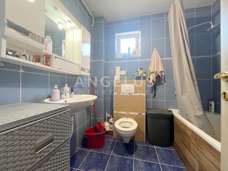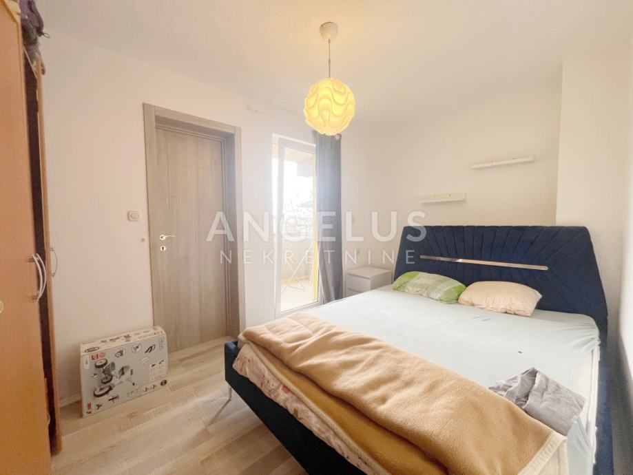 Zgrada je završena prije 4 godina, prostire se na 5 etaža. Stan, stambene površine 52,07 m2, nalazi se na prvom katu, a sastoji se od: dvije spavaće soba, hodnika, kuhinje sa blagovaonicom i dnevnim boravkom, 2 kupaonice i natkrivenog balkona. Stanu pripada i dvojna garaža (23,47 m2)..Stanu pripada i suvlasništvo u bazenu koji se nalazi u dvorištu ispred zgrade. STANOVI SU ETAŽIRANI, UPORABNA DOZVOLA, STAN JE MOGUĆE KUPITI KREDITOM BANKE.