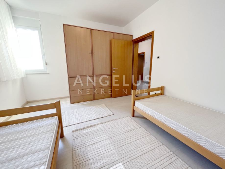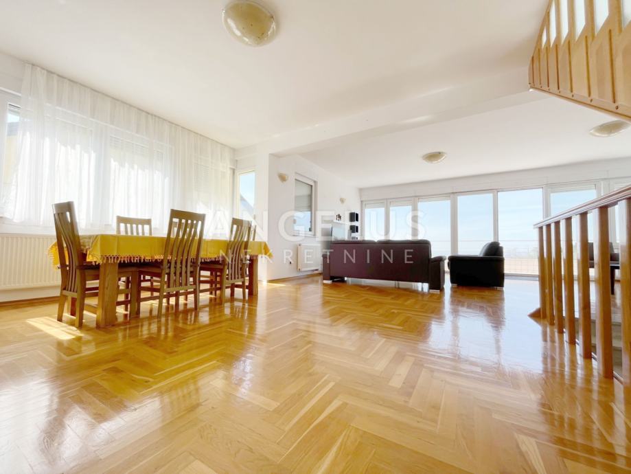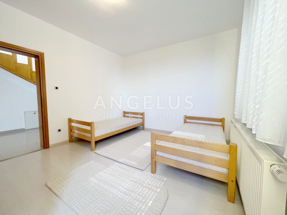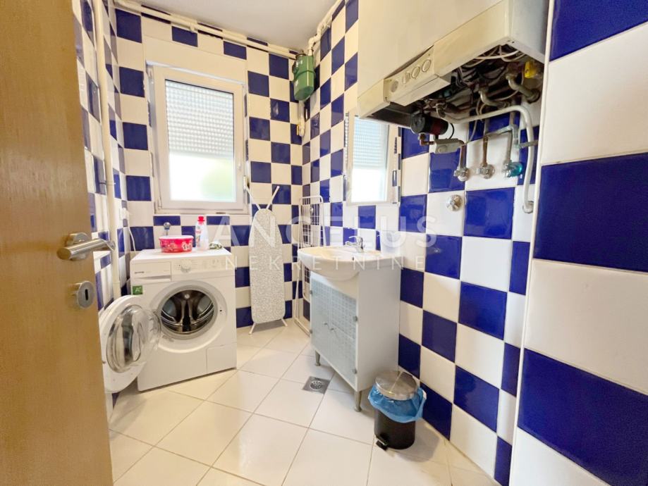 Dvojna kuća površine 240 m2, prostire se na dvije etaže. U prizemlju se nalazi ulazni prostor, garaža, 3 spavaće sobe, kupaonica i praonica. na katu je veliki dnevni boravak s izlazom na terasu, kuhinja, toalet, kupaonica, spavaća soba i kuhinja. Na vrhu kuće nalazi se velika krovna terasa. Može biti namještena i nenamještena. Plinsko centralno grijanje, klimatizirano.