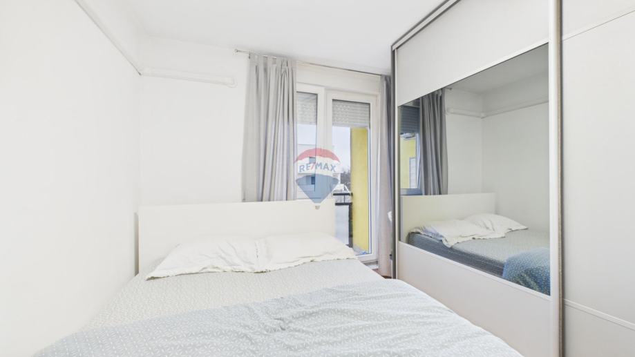 Nalazi se na drugom katu zgrade novije gradnje s ukupno četiri kata i sjever/istok je orijentacije. Sastoji se od dnevnog boravka sa blagovaonom i kuhinjom, spavaće sobe sa izlazom na lođu, kupaonice i hodnika. Stan je kompletno namješten i uređen 2024. godine, a svi kućanski uređaji još su pod važećom garancijom. Prodaje se u potpunosti namješten, što omogućuje brzo useljenje bez dodatnih ulaganja. Uz stan dolazi i parkirno garažno mjesto smješteno u podrumu zgrade, do kojeg se također pristupa liftom. Zgrada je pod video nadzorom. Grijanje je etažno centralno na plin.