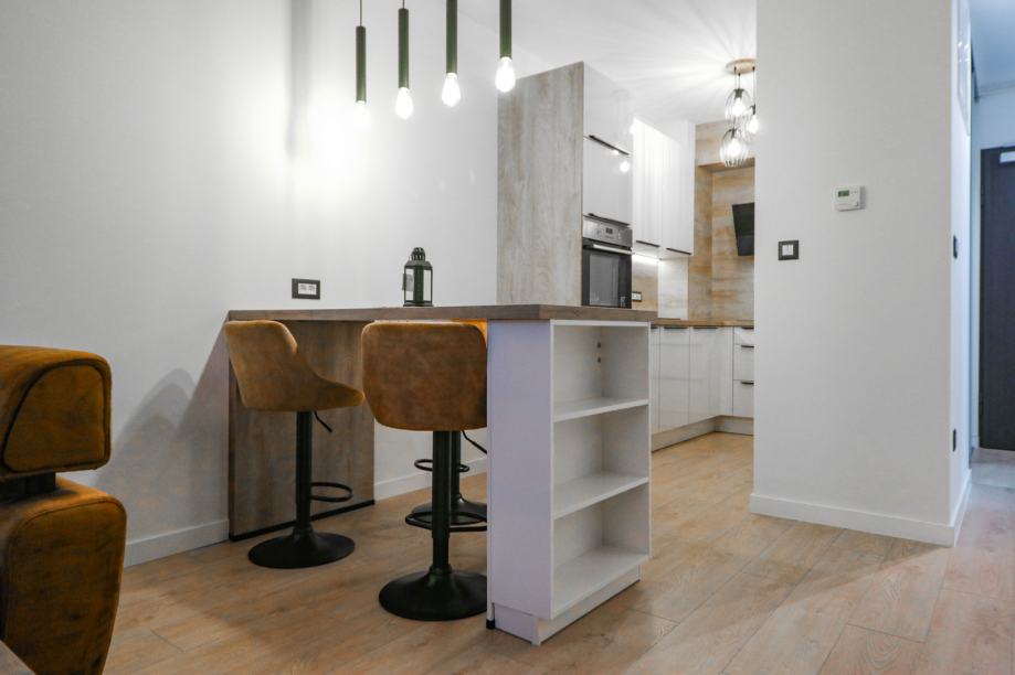Posebna pozornost posvećena je uređenju i stan ostavlja odličan dojam! U opremanju su korišteni kvalitetni materijali, PVC vanjska stolarija, protuprovalna vrata, klima...