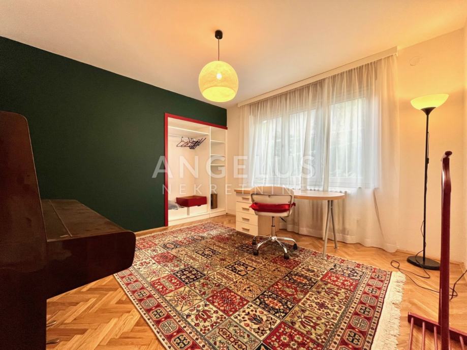 Dvoetažni stan se nalazi na I i II katu urbane vile u mirnoj ulici na Pantovčaku. Stan je površine cca 190m2, a sastoji se od ulaznog hodnika, gostinjskog WC-a, nove moderne kuhinje kompletno opremljene i namještene, blagovaonice i dnevnog boravka koji imaju izlaz na terasu koja je orjentirana na jug i skoje se pruža predivan pogled na grad. Na gornjoj etaži nalaze se dvije spavaće sobe i kupaonica s kadom, a na drugoj strani nalaze se prostrana spavaća soba s izlazom na balkon i još jedna također vrlo prostrana soba koja je sada organizirana kao radni dio, no idealna je za master sobu koja onda ima svoju kupaonicu i sobu predviđenu za garderobu.