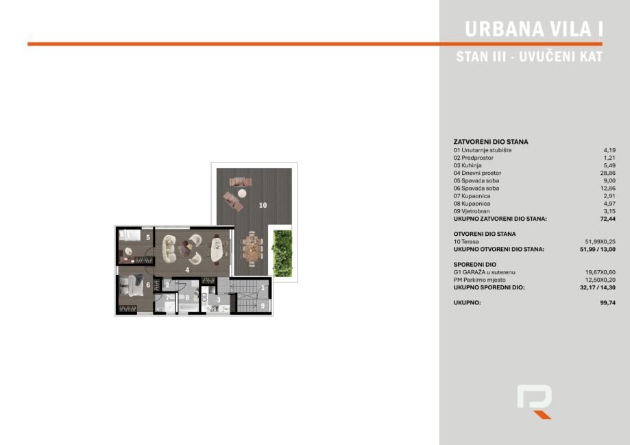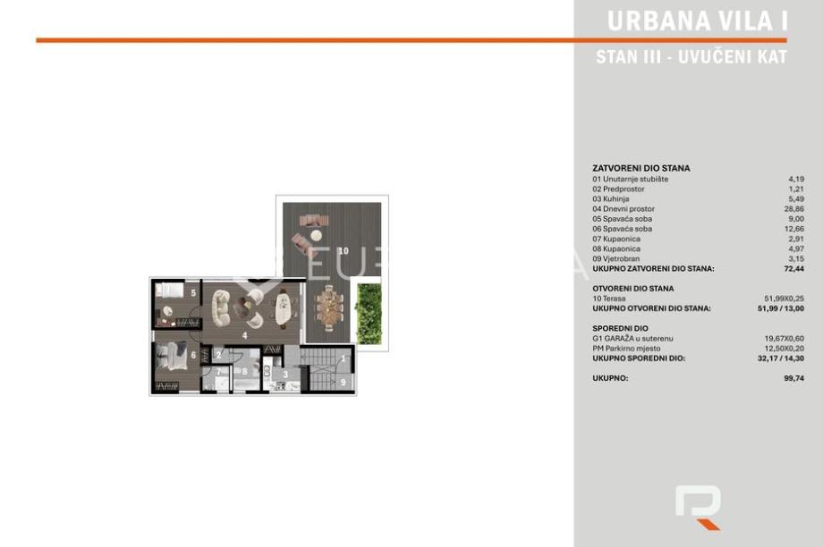 Zagreb, Perjavica, prodaje se trosoban stan u izgradnji ukupne površine 99,74 m2, drugi kat (penthouse).Sastoji se od: predprostora, dvije spavaće sobe, dnevnog boravka i kuhinje, dvije kupaonice, terase, garaže i vanjskog parkirnog mjesta. Nalazi se u Vili oznake 1. stan S3.Očekivano useljenje...Za ovu nekretninu kontaktirajte agenta na broj telefona +385 95 391 8992.Više na Eurovilla.hr, ID: 446609Direktan link: https://eurovilla.hr/nekretnina/zagreb-perjavica-trosoban-stan-99-74-m2-drugi-kat-kat-penthouse-novogradnja/446609/-----Zagreb, Perjavica, two-bedroom apartment under construction for sale, total area 99.74 m2, second floor (penthouse).It consists of: entrance hall, two bedrooms, living room and kitchen, two bathrooms, terrace, garage and outdoor parking space.Expected move-in date 12/2026.Gas underfloor heating,... For this property contact our agent on telephone number +385 95 391 8992.More on Eurovilla.hr, ID: 446609Direct link: https://eurovilla.hr/en/property/zagreb-perjavica-two-bedroom-apartment-99-74-m2-second-floor-penthouse-new-building/446609/...