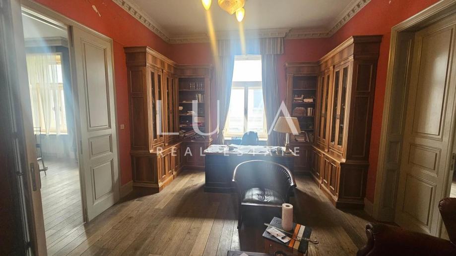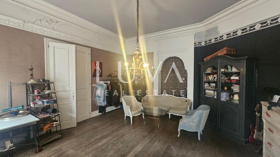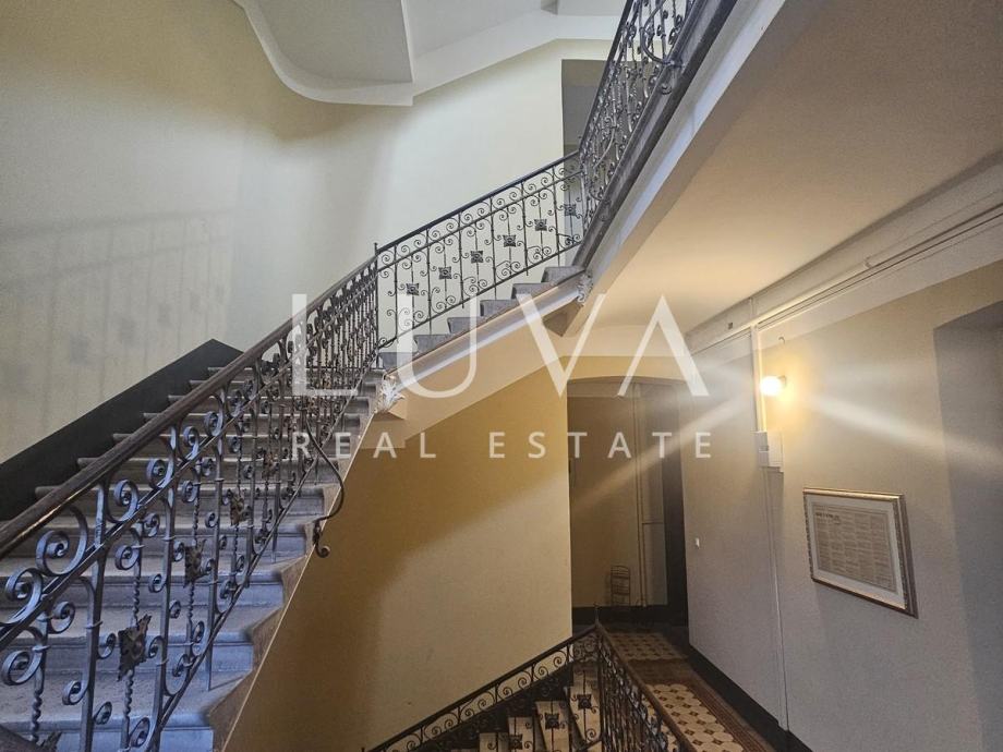 Prodaje se stan od 175m2 u strogom centru Zagreba, u Petrinjskoj ulici, na svega nekoliko koraka od trga bana Josipa Jelačića. Stan se nalazi na 1. katu u šarmantnoj zgradi s predivnim uređenim prostranim stubištem. Ovo je tipični starinski veliki stan s prostranim prolaznim sobama i stropovima visokim čak 380 cm. Sastoji se od dugačkog hodnika, 4 velike sobe, 1 manje sobe, ostave, veće kupaonice, manje kupaonice i kuhinje koja ima izlaz na balkon. Stanu također pripada ostava na tavanu i spremište u podrumu. Ovaj stan za adaptaciju nudi veliki potencijal za stan iz snova u strogom centru Zagreba ili za uredski prostor za mirne djelatnosti kao odvjetnički ured, ordinacija i slično.