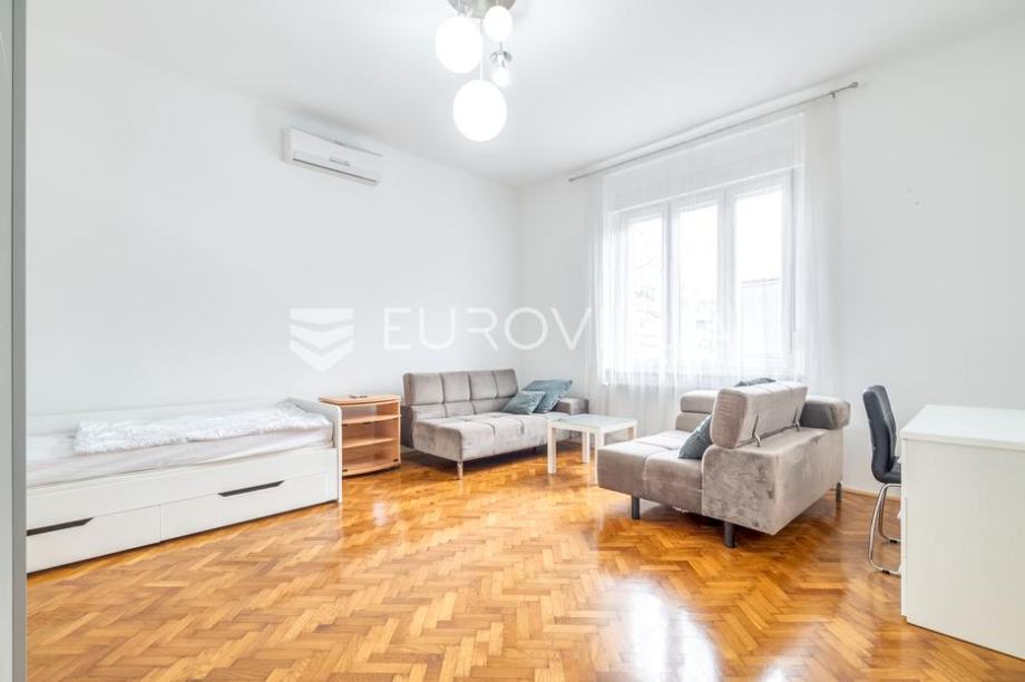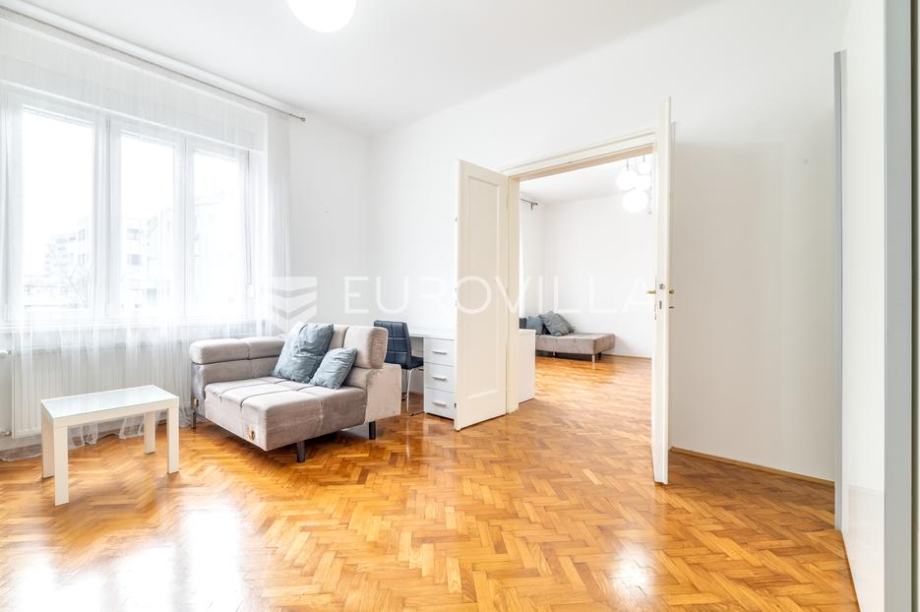 Maksimir, one-bedroom apartment of 75 m2 on the 1st floor of a well-built and maintained building without an elevator.It consists of an entrance hall, spacious living room, kitchen and dining room with an open floor plan with access to a 30 m2 terrace oriented to the courtyard, bedroom and...