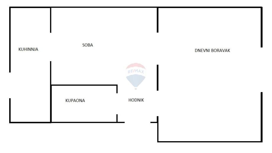 Sastoji se od kuhinje, kupaone, dnevnog boravka i dodatne prostorije koja se može koristiti kao blagovaonica, radna ili spavaća soba.