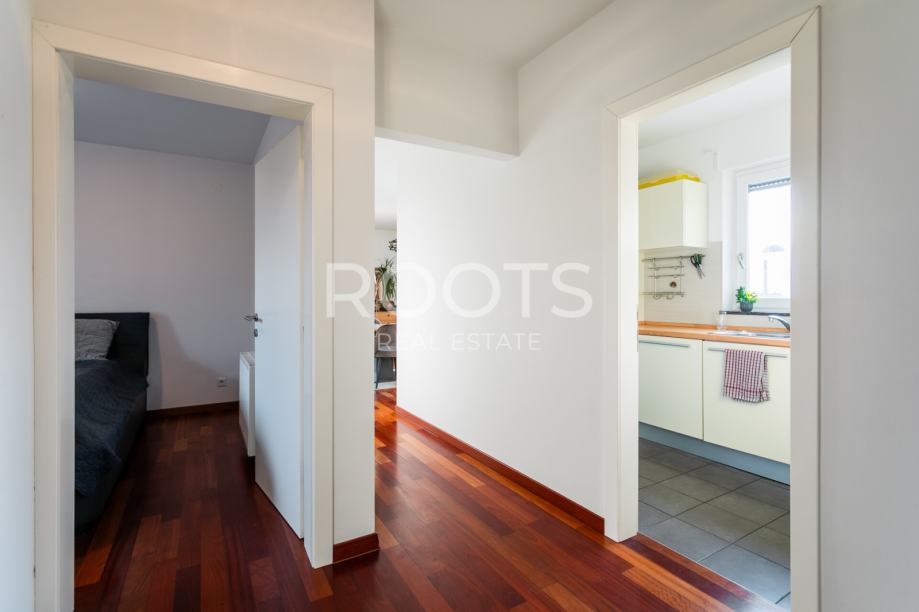 Prostor je funkcionalno i logično raspoređen te se sastoji od: ulaznog hodnika, prostranog dnevnog boravka s blagovaonicom, kuhinje, dvije spavaće sobe, kupaonice s podnim grijanjem, zasebnog WC-a te dvije velike terase orijentirane prema jugu, uz dodatnu istočnu i zapadnu orijentaciju koja osigurava obilje prirodnog svjetla tijekom cijelog dana.