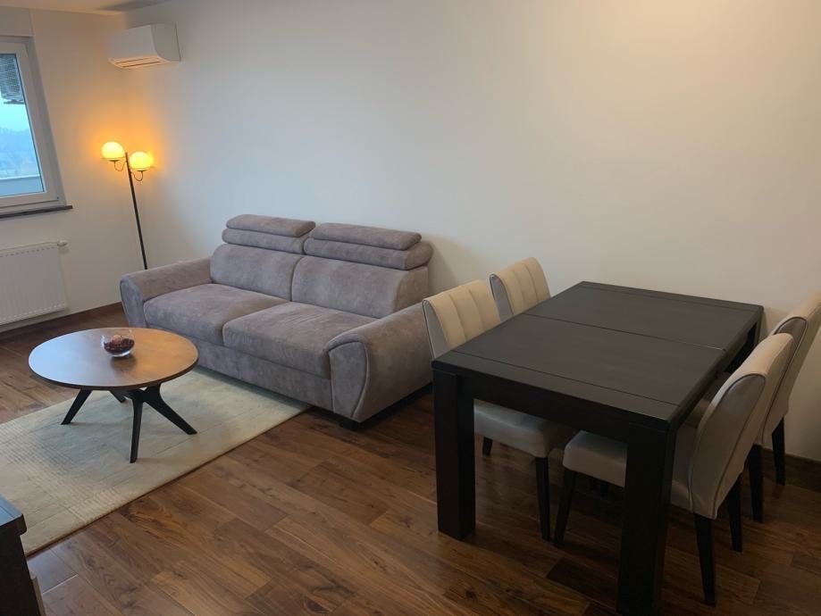 Iznajmljuje se na duže vrijeme dvosoban stan površine 62m2, na sedmom katu zgrade građene 2020. godine, Prečko.