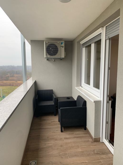 Stan se sastoji od hodnika, open space kuhinje s blagovaonom i dnevnim boravkom, ostave, spavaće sobe, kupaonice i loggie. Namješten i opremljen aparatima, klima uređaj...