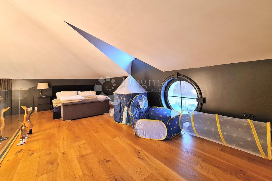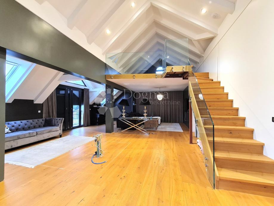 2. kat: zasebni stan sa dnevnim boravkom, spremnom instalacijom za kuhinju i kuhinjski otok, spavaćom i garderobnom sobom, kupaonicom, te galerijom na kojoj je još jedna spavaća soba.
