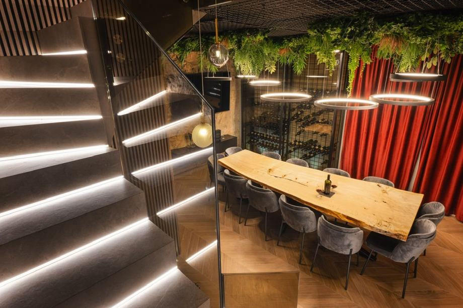 • Podrum: Zona za relaksaciju s prostranim prostorom za druženje i izlazom na veliku terasu s jacuzzijem. Uključuje i privatnu saunu za spa doživljaj u vlastitom domu, modernu kupaonicu te praktičnu prostoriju za pranje i sušenje rublja.