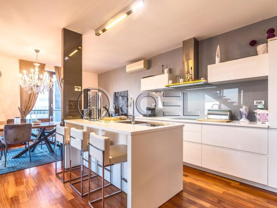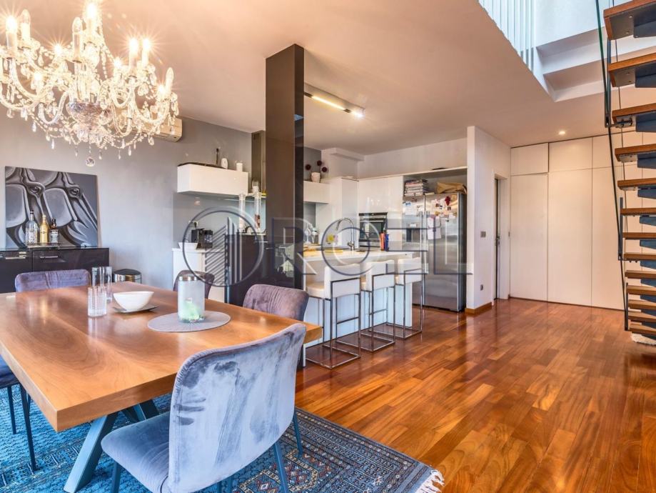 Radnička cesta, luksuzan dvoetažan peterosoban stan zatvorene površine 179,03 m2 s loggiom 15,00 m2 na 5 katu novije gradnje (2010.). Pripada mu garažno parkirno mjesto 17,50 m2 na etaži -3. Ukupno obračunski NKP 199,03 m2.
