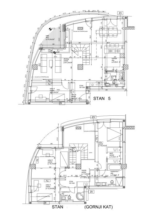 Radnička cesta, luksuzan dvoetažan peterosoban stan zatvorene površine 179,03 m2 s loggiom 15,00 m2 na 5 i 6 katu odlično održavanje zgrade novije gradnje. Pripada mu garažno parkirno mjesto 17,50 m2 na etaži -3. Ukupno obračunski 199,03 m2.Stan se proteže kroz dvije etaže koje su...