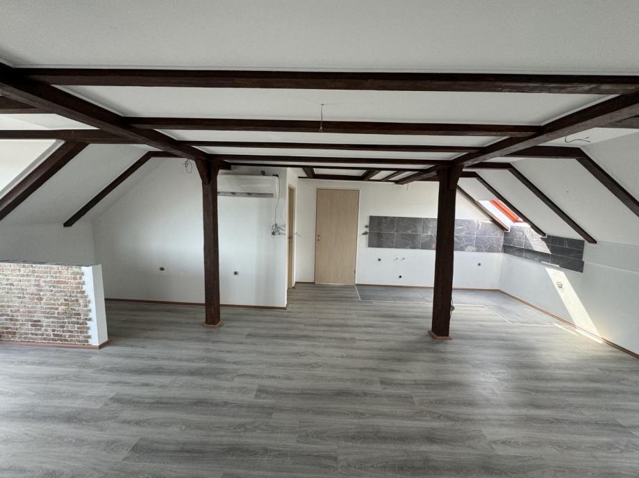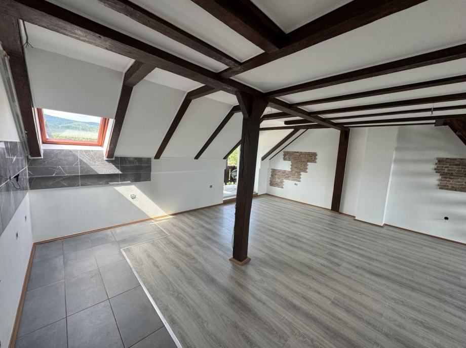 Stan se nalazi u potkrovlju novouređene stambene kuće iz koje se prostire prekrasan otvoren pogled na grad i Medvednicu.