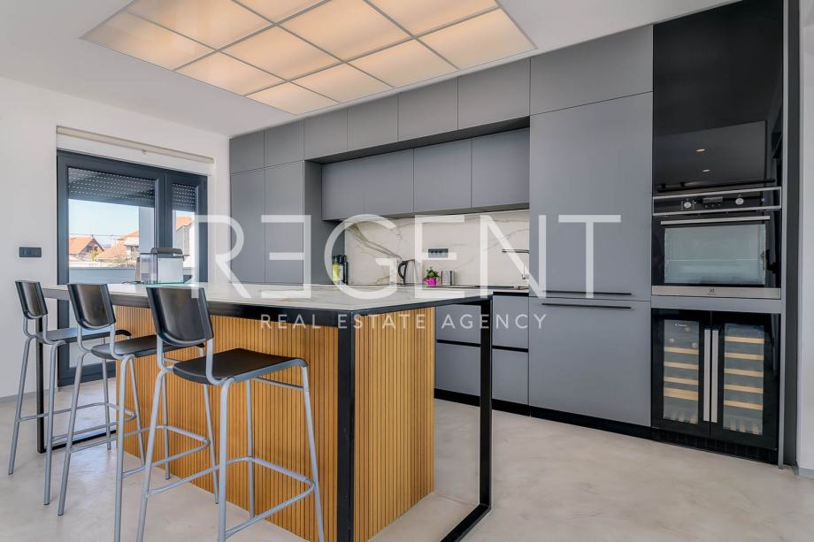 Iznajmljuje se luksuzan, moderno uređen penthouse u Remetama, smješten u mirnoj slijepoj ulici s panoramskim pogledom na grad. Nalazi se u urbanoj vili s tri stambene jedinice i dolazi s tri pripadajuća parkirna mjesta. Penthouse se prostire na 105 m² i sastoji se od prostranog dnevnog boravka povezanog s blagovaonicom i kuhinjom, tri spavaće sobe, dvije kupaonice i dodatnog gostinjskog toaleta. Iz kuhinje se izlazi na balkon i veliku, natkrivenu terasu, idealnu za uživanje u pogledu i privatnosti.Stan je opremljen vrhunskim kuhinjskim uređajima, dizajnerskim namještajem i električnim roletama. U svim sobama i hodnicima ugrađeni su ormari koji pružaju dovoljno spremišnog prostora. Grijanje je centralno preko zgrade, orijentacija stana je jugozapadna, a sama zgrada je urbana vila novije gradnje iz 2021. godine.Penthouse dolazi s garažom i dodatnim parkirnim mjestom. Procijenjeni mjesečni trošak režija iznosi oko 150 eura, a prilikom najma potrebno je uplatiti polog u visini dviju mjesečnih najamnina.Nekretnina se nalazi u blizini Maksimira, u mirnom i ekskluzivnom dijelu grada. U neposrednoj blizini su trgovine, restorani, škole i vrtići, a autobusna stanica udaljena je nekoliko minuta hoda.Kućni ljubimci su mogući uz prethodni dogovor. Za dodatne informacije i razgledavanje, slobodno se javite!Za više informacija, kontaktirajte našeg agenta na brojeve telefona:
