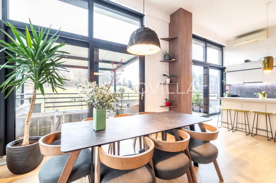 Zagreb, Remete, a virtual Penthouse of 127 m2 in a building with only 6 apartments, which guarantees peace, a high level of privacy and exclusivity of living.The apartment consists of an entrance hall, an impressive open-space living room with kitchen and dining room, two spacious and luxurious...
