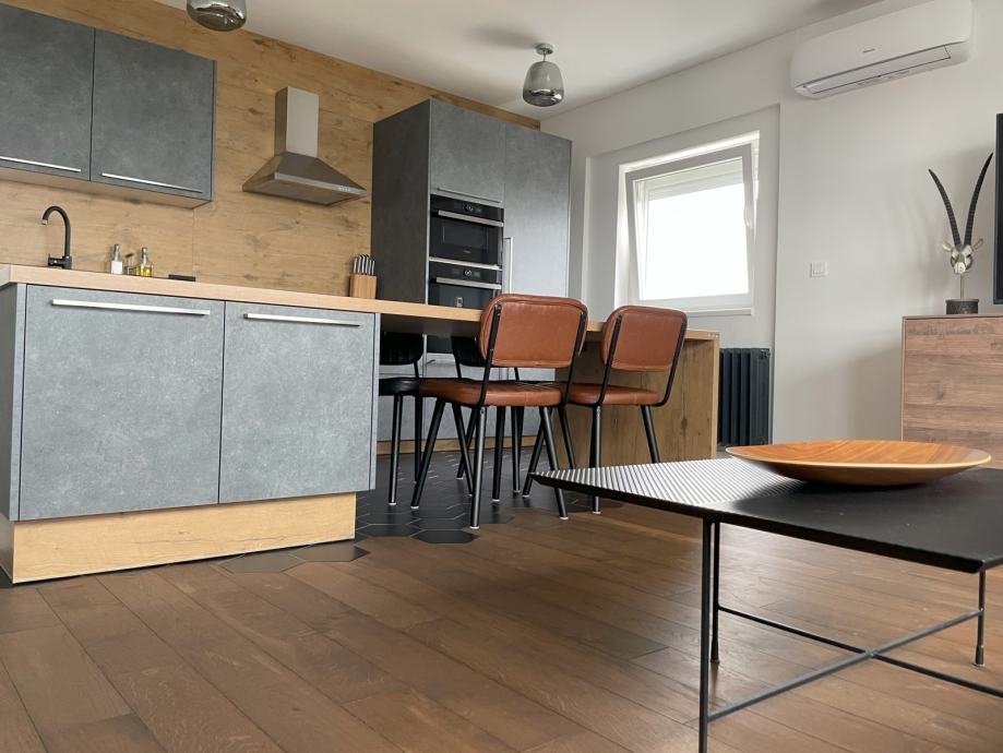 Posebna pozornost posvećena je uređenju prostora. Stan je potpuno renoviran i novonamješten 2022. godine, vrhunski održavan, kao nov! Iznimno je ugodan i ostavlja odličan dojam!!!
