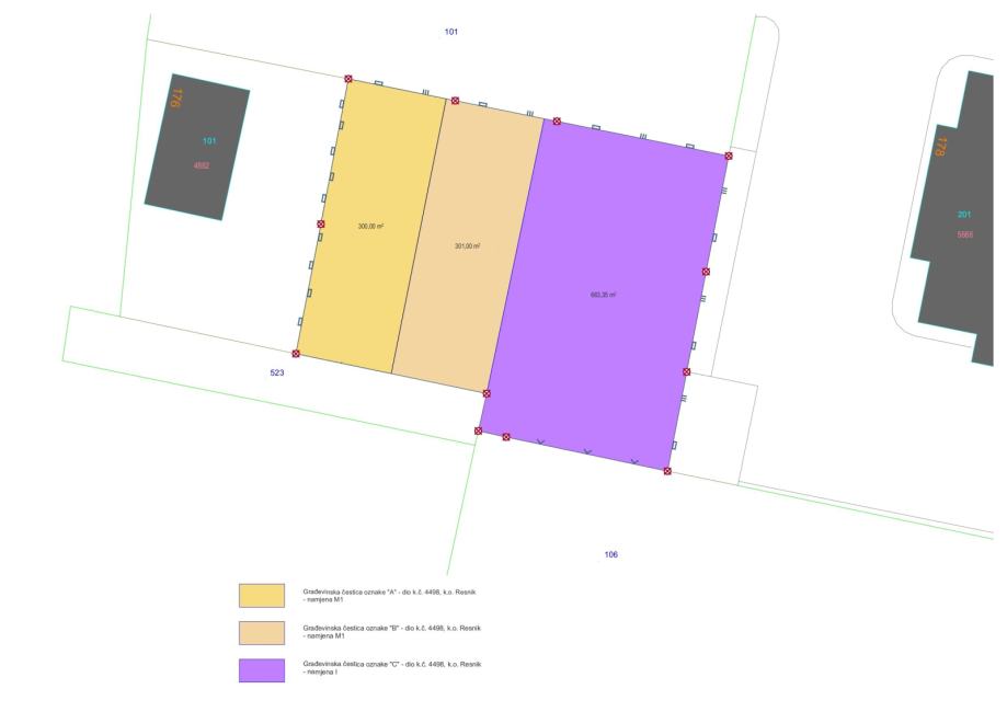 U mirnom zagrebačkom naselju Resnik prodaje se građevinsko zemljište ukupne površine 1.264 m2, koje nudi izvrsnu priliku za razvoj stambenog projekta. Manji zapadni dio parcele nalazi se u zoni mješovite namjene (planska oznaka M), dok je veći istočni dio smješten u zoni gospodarske namjene (planska oznaka G). Zemljište se nalazi unutar niskokonsolidiranog gradskog područja za koje vrijedi urbano pravilo „Nova regulacija na neizgrađenom prostoru“ (planska oznaka 3.2.), što omogućuje fleksibilnost u planiranju i gradnji.