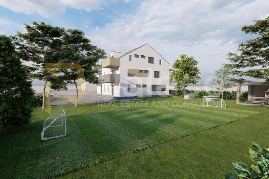U prodaji je funkcionalan i kvalitetno projektiran stan u prizemlju visokokvalitetne zgrade u izgradnji, ukupne neto površine 76,46 m2.Stan se sastoji od dnevnog boravka s kuhinjom i blagovaonicom, 3 spavaće sobe, 2 kupaonice te natkrivene terase površine 4,62 m2. Stanu pripada i jedno vanjsko parkirno mjesto.Grijanje je riješeno putem podnog grijanja na dizalicu topline, uz dodatne klima uređaje, što osigurava visoku energetsku učinkovitost, ugodnu klimu tijekom cijele godine.Zgrada se nalazi mirnoj ulici, što jamči privatnost i mir, a istovremeno odličnu prometnu povezanost. U neposrednoj blizini nalazi se Slavonska avenija te ZET autobusna stanica, Lesnina, Momax i Plodine.Završetak radova i useljenje planirani su za listopad 2026. godine.